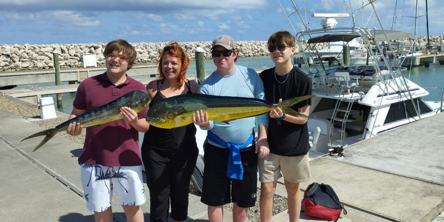 Mahi Mahi (Dorado): These guys are the acrobats of the sea. Known for their vibrant colors and high-flying antics, Mahi can put on quite a show when hooked. They're fast growers and can reach up to 50 pounds in our waters. Best part? They're delicious if you decide to keep one for dinner.